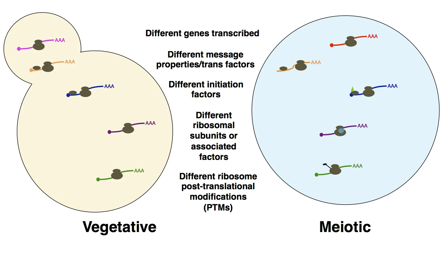 Thousands of instances of uORF translation were observed in cells undergoing meiosis, suggesting a meiotic shift in translation mechanism for at least a subset of transcripts. Additionally, many of these uORFs initiate translation at near-cognate (non-AUG) codons. The uORFs observed are highly discrete, specific, and heavily enriched in meiosis relative to any other condition examined to date, but the molecular basis for their translation remains a mystery. We aim to unravel both the biological significance of these uORFs as well as the translation specializations that produce them in a meiosis-specific manner. We recently found that low meiotic levels of eIF5A, a translation factor implicated in elongation and start codon selection, drive part of the increase in non-AUG initiation seen in meiotic cells, but believe that additional factors are involved, as well.